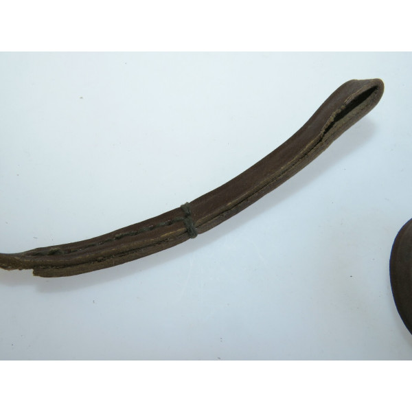 Оригинальный кожаный шнур для крепления пистолета ТТ образца 1933 года к поясному ремню. Использовался для предотвращения потери оружия в полевых условиях. Выполнен из прочной кожи с металлическими элементами. Отличное складское состояние.