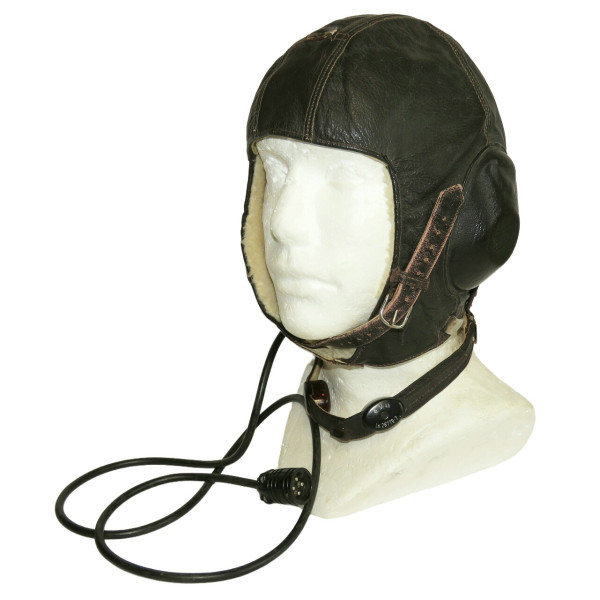 Летный кожаный шлем Luftwaffe LKpW101 с ларингофонами и штепселем Редкий кожаный шлем модели LKpW101, использовавшийся пилотами Люфтваффе во Второй мировой войне. Выполнен из высококачественной коричневой кожи с подкладкой из натуральной овчины. Оснащён встроенными ларингофонами и оригинальным штепселем для подключения к радиосвязи, полный комплект. На внутренней стороне присутствует оригинальная фабричная маркировка: Baumuster: LKpW101 Gerät-Nr.: 124-436A Werk-Nr.: –/Köster Anf.Z.: Ln 26618 Поставщик: Siemens, Luftfahrtgerätewerk Hakenfelde Также указан размер: Größe M (сохранилось красной штампованной краской). Производство фирмы Köster по заказу Siemens, поставлявшей оборудование для ВВС рейха. Вещь находится в отличном коллекционном состоянии, мягкая кожа без повреждений, овчина пушистая и чистая, все провода и штыри на месте, маркировка читаемая, комплект полностью оригинальный. Один из лучших образцов пилотного снаряжения Люфтваффе.