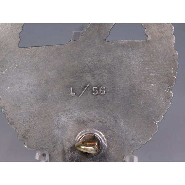Знак изготовлен из цинка, как и вся продукгия данного производителя. На оборотной стороне имеется клеймо LDO с кодом производителя L/56. Состояние знака близкое к минтовому, венок без позолоты, покрыт слоем глянцевого цинка.