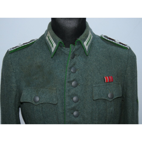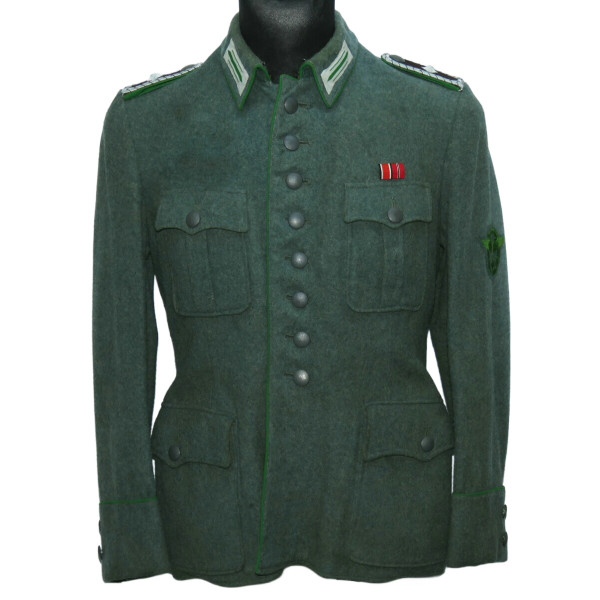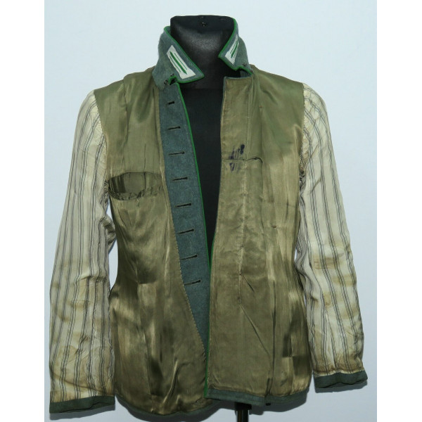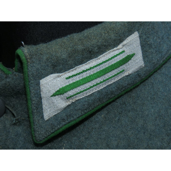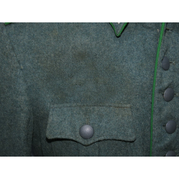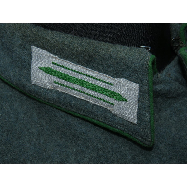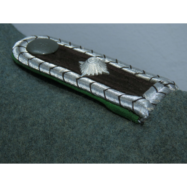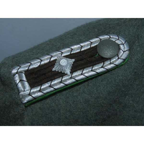 В отличие от довоенных Waffenrock, обшлага рукавов и воротник не коричневого цвета, а изготовлены из стандартного полицейского сукна того же оттенка, что и весь мундир.