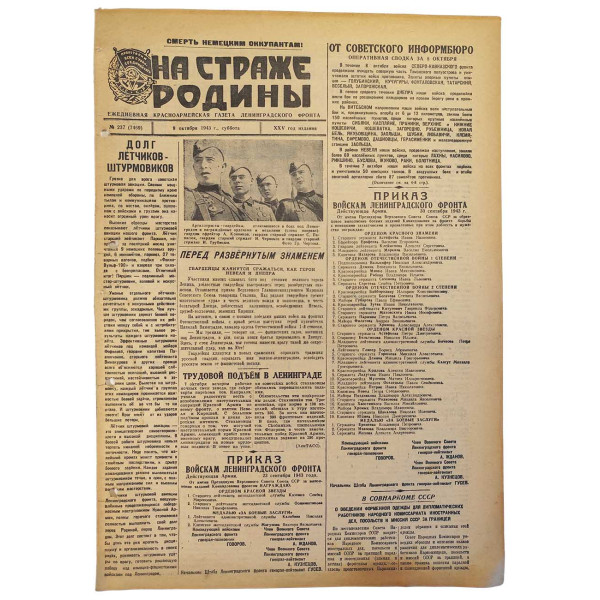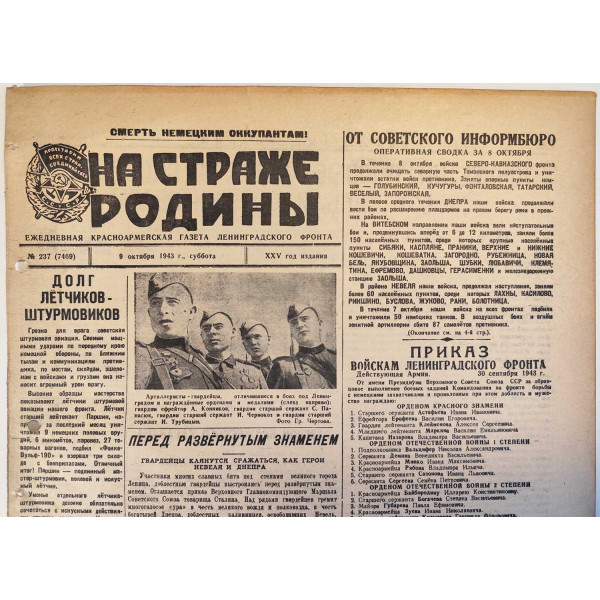 Артиллеристы-гвардейцы, отличившиеся в боях под Ленинградом и награждённые орденами и медалями: гвардии ефрейтор Конников, гвардии старший сержант Панасюк, гвардии старший сержант Чернокоз и гвардии старший сержант Трубицын.