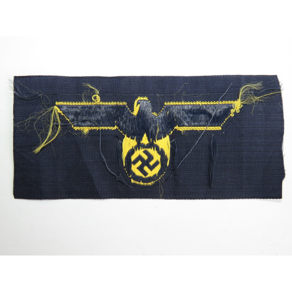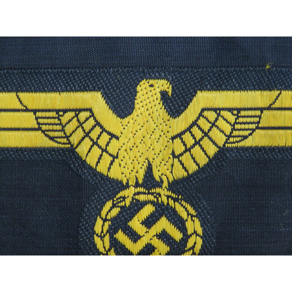 Выполнен жаккардным плетением BeVo жёлтой нитью на синей основе. Состояние отличное.