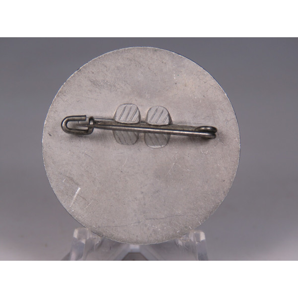 Редкий знак участника лагерного слёта Гитлерюгед, проходившего в местечке Франк в 1936 году. Композиция включает стилизованный палаточный лагерь с разложенными шатрами и флагштоком, на фоне которого выделяется вертикальный ромб эмблемы Гитлерюгенд с чёрной свастикой в белом круге. Надпись HJ Zeltlager 1936 Frank расположена в нижней части, выполнена рельефно. Этот знак относится к категории Veranstaltungsabzeichen, вручался участникам и организаторам лагеря. Использовался как элемент идентификации и символ единства движения в период его наивысшего подъёма. Изготовлен из алюминия, без покрытия.