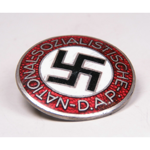 Партийный знак НСДАП, изготовленный производителем Gottlieb Friedrich Keck & Sohn, Pforzheim с кодом RZM M1/93. Знак выполнен из бунтметалла с хорошо сохранившимся серебрением. На эмали имеются лёгкие трещинки и шероховатости, что характерно для активно носившихся экземпляров. Несмотря на небольшие следы бытования, знак остаётся подлинным, аккуратным примером партийной символики НСДАП и представляет интерес для коллекционеров.
