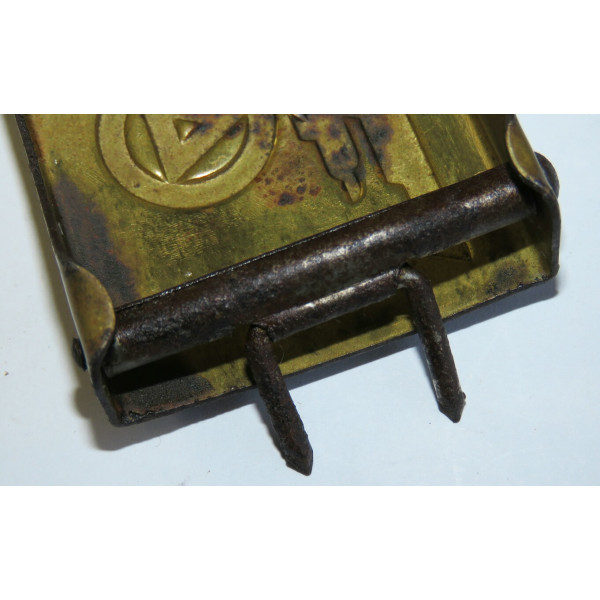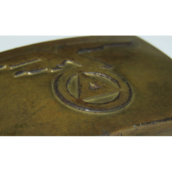 Пряжка Национального союза молодёжи Нидерландов (Nationaal-Socialistische Jeugdvereniging), созданного по образцу Hitlerjugend. Изготовлена из стали с латунным покрытием. На поверхности заметны следы времени и окисления, однако в целом предмет сохранился как превосходный коллекционный экземпляр.