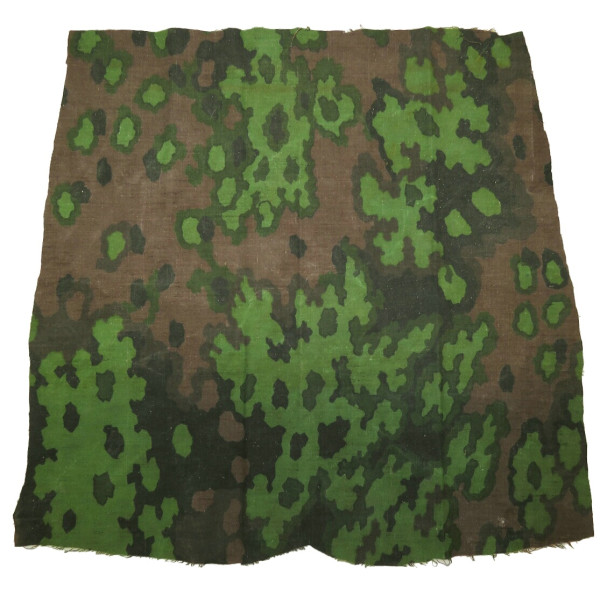 Великолепно сохранившийся фрагмент ткани с камуфляжем Eichenlaubtarn, использовавшимся в униформе и снаряжении войск СС. Материал отличается исключительной яркостью красок и чёткостью рисунка. Без следов выгорания или загрязнений. Один из лучших по насыщенности экземпляров, идеально подходящий для коллекции или музейной экспозиции.