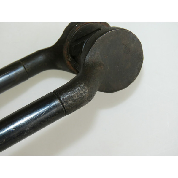 Оригинальный откидной приклад для пистолета-пулемёта системы Vollmer MP40. Металлическая конструкция с характерным механизмом складывания, типичным для данного типа оружия. Поверхность с равномерной патиной, без повреждений или утрат. Механизм фиксации работает чётко. Редкий и востребованный элемент для комплектования подлинного экземпляра MP40.