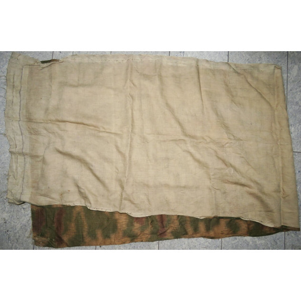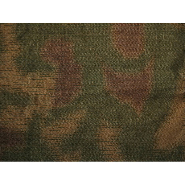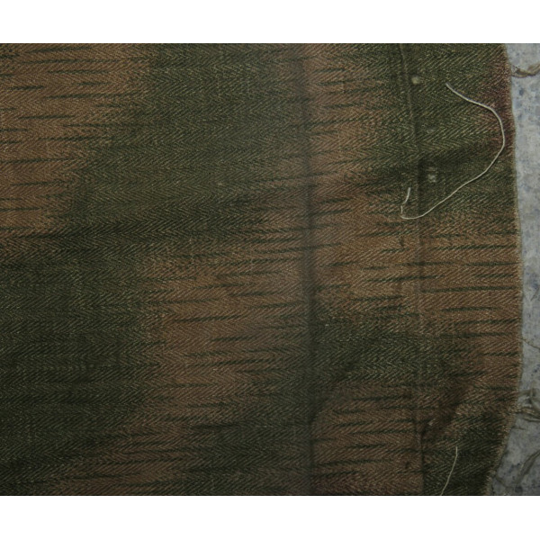 Отрез камуфлированного материала Sumpftarnmuster позднего варианта, изготовленный на ткани типа Drillich с переплетением «ёлочка», с хорошо сохранившимся рисунком и окраской, характерный для позднего периода производства.