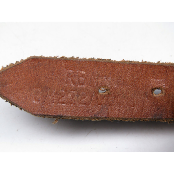 Подбородочный ремень для немецких шлемов выпуска середины войны с маркировкой RB-Nr. 0/12 72/0002, в отличном состоянии, с небольшими следами бытования, кожа сохранила свой превосходный коричневый цвет, мягкая и гибкая без изломов, трещин и разрывов