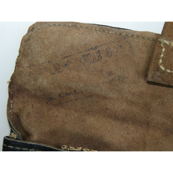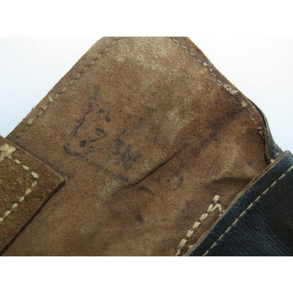 Дополнительный подсумок к трёхлинейной винтовке образца 1941 года, использовавшийся в начале Великой Отечественной войны. Выполнен из чёрной кожи, рассчитан на ношение патронов. Редкий тип раннего выпуска, в хорошем состоянии. сзади отсутствуют крепления ремня