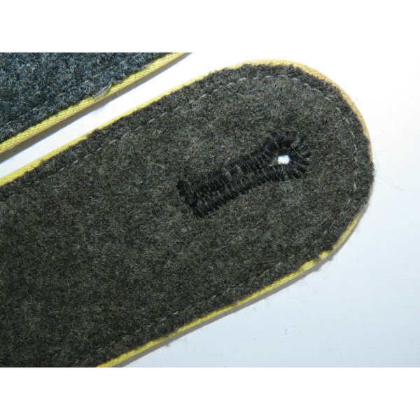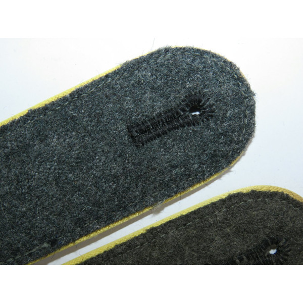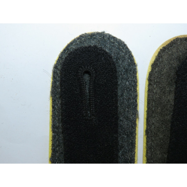 Погоны Waffen-SS с лимонно-жёлтой выпушкой, войска связи. Изготовлены из сукна с типичным W-образным плетением, стандартным для периода середины–конца войны (М42). Из партии погон, обнаруженной в Германии несколько лет назад. Минтовое состояние.