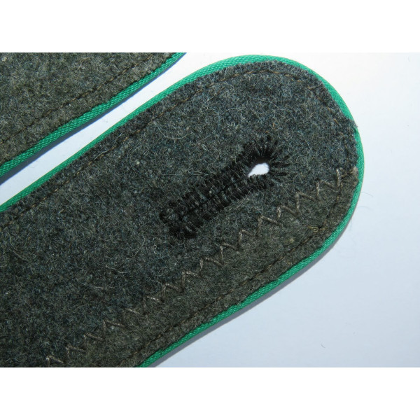 Пара погон Waffen-SS образца M42 с зелёной выпушкой для горно-егерских частей. Сукно с текстурой рисунка W, характерной для середины–конца войны. Из партии погон, обнаруженной в Германии несколько лет назад. Минтовое состояние.