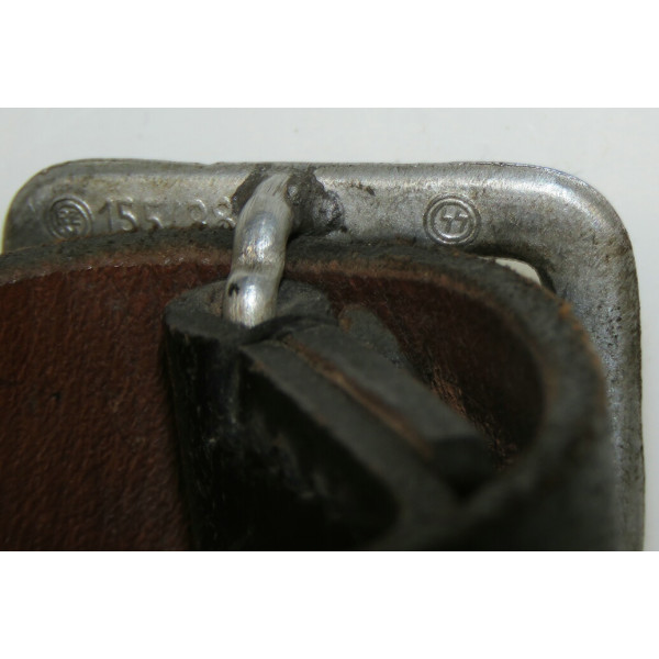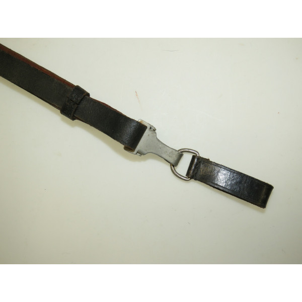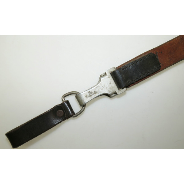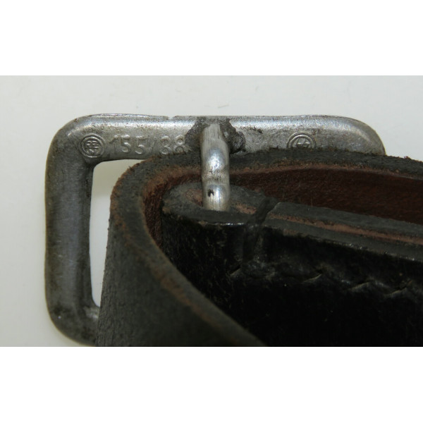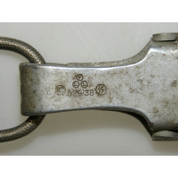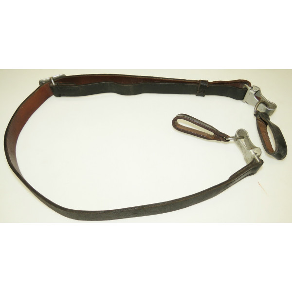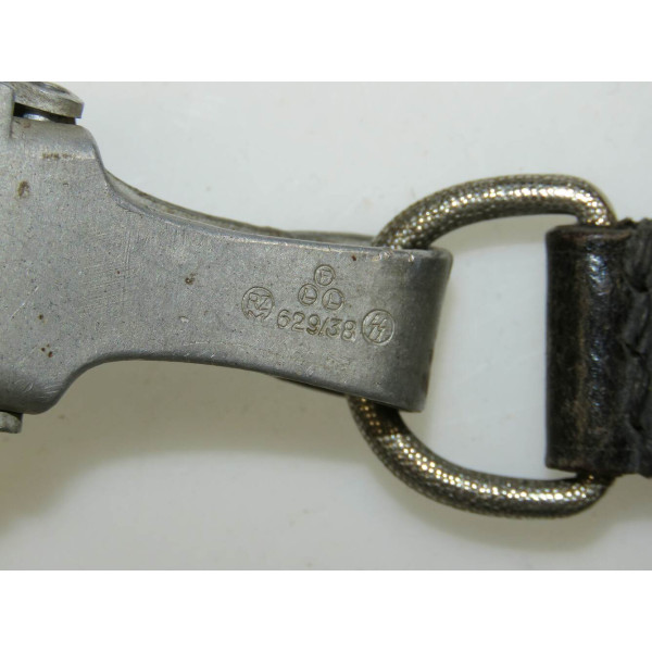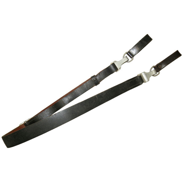 Кожаная портупея, использовавшаяся в составе Allgemeine-SS или SS-Verfügungstruppe как часть парадно-выходного и служебного обмундирования мирного времени. Изготовлена из прочной чёрной кожи, снабжена алюминиевыми карабинами с чётким клеймом Friedrich Linden, Lüdenscheid (три кольца с логотипом FLL), а также маркировкой RZM 629/38 SS. Центральная пряжка с регулировкой размера имеет маркировку RZM 155/38. На одном из ремней присутствует аккуратный срез длиной около 4 см, выполненный владельцем для уменьшения размера — это не влияет ни на внешний вид, ни на функциональность изделия. Портупея в отличном состоянии, кожа мягкая, металлические детали хорошо сохранились.