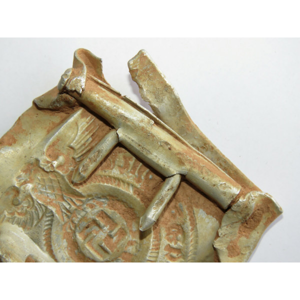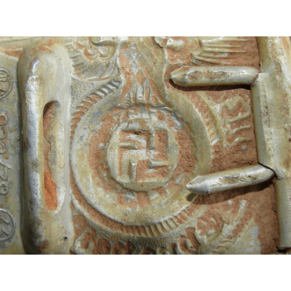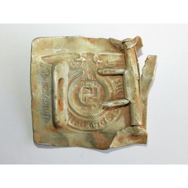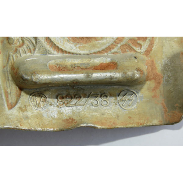 Ранняя алюминиевая пряжка SS с маркировкой RZM 822/38, соответствующей производителю Richard Sieper, Lüdenscheid. Найдена на Восточном фронте, в районе Тверской – Московской области.