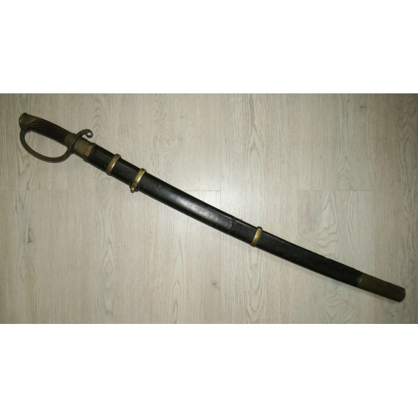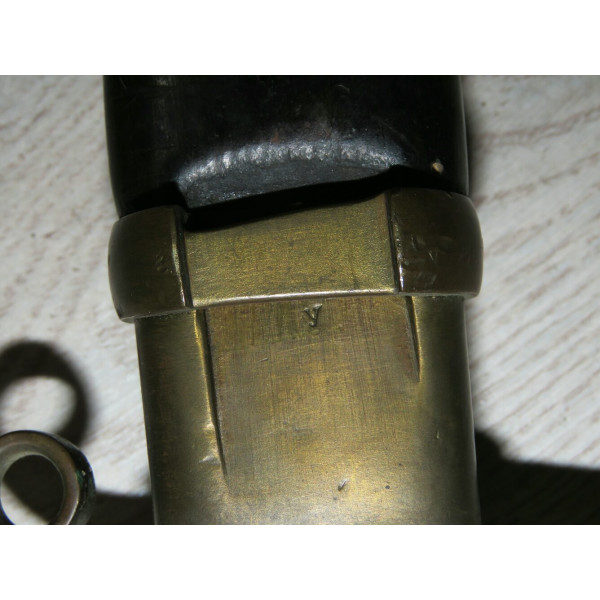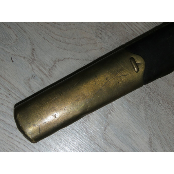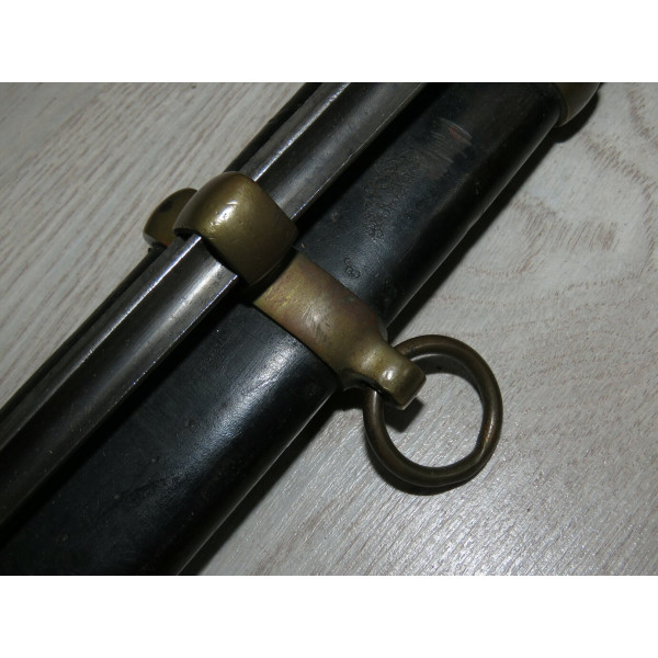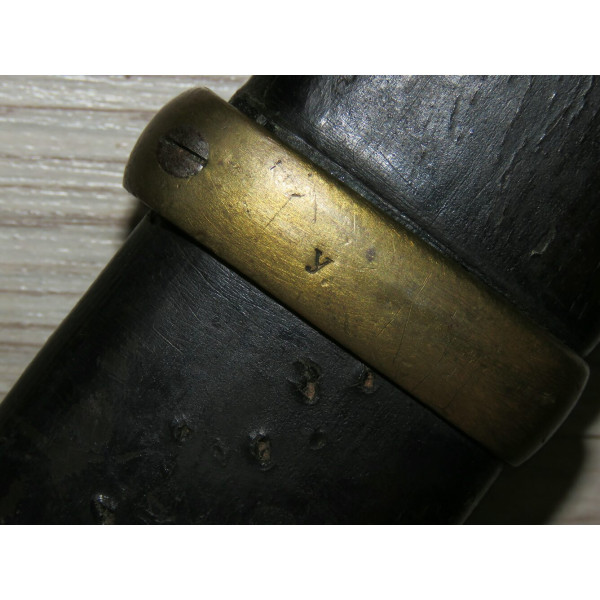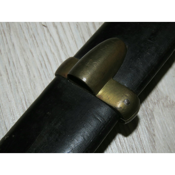 Ножны деревянные, обтянуты тканью с резиновой пропиткой, предназначенной для амортизации ударов. Латунный прибор включает устье, три гайки с колодками под штык и наконечник.