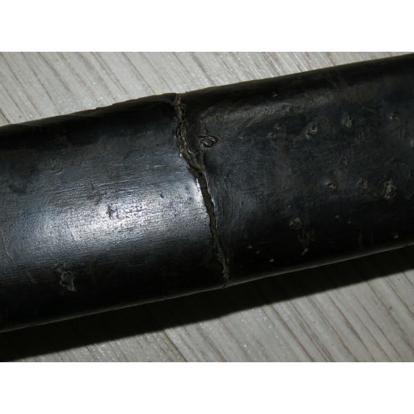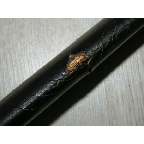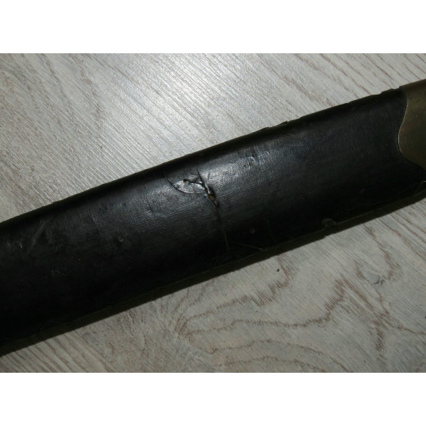 На внутренней стороне ножен, в средней части, имеется продольная трещина. Несмотря на повреждение, конструкция остаётся прочной — ножны полностью функциональны, не ломаются и надёжно удерживают клинок.