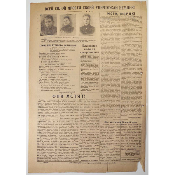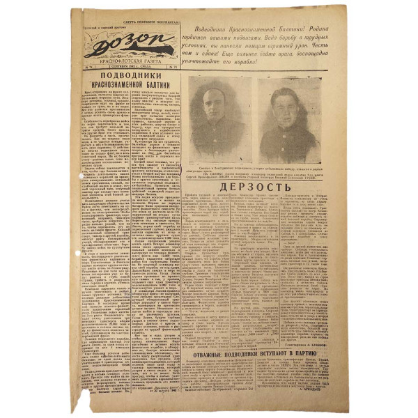 Подводники Краснознаменной Балтики! Родина гордится вашими подвигами. Ведя борьбу в трудных условиях, вы нанесли немцам огромный урон. Честь вам и слава! Еще сильнее бейте врага, беспощадно уничтожайте его корабли!