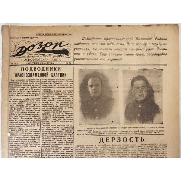 Дозор. Краснофлотская газета. № 73. 2 сентября 1942 г., среда.