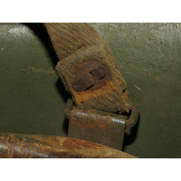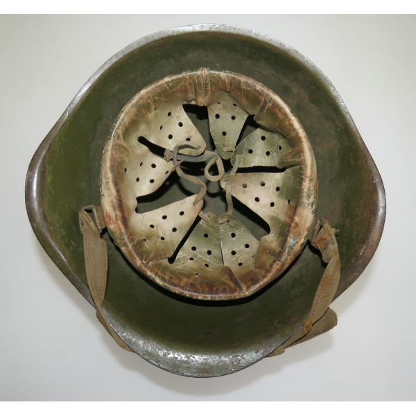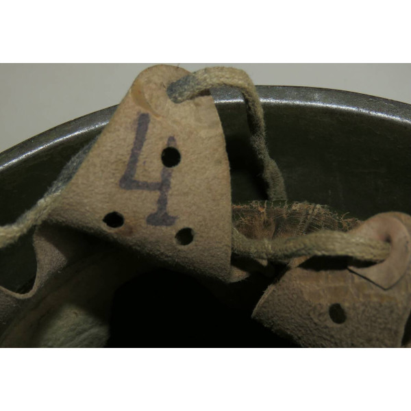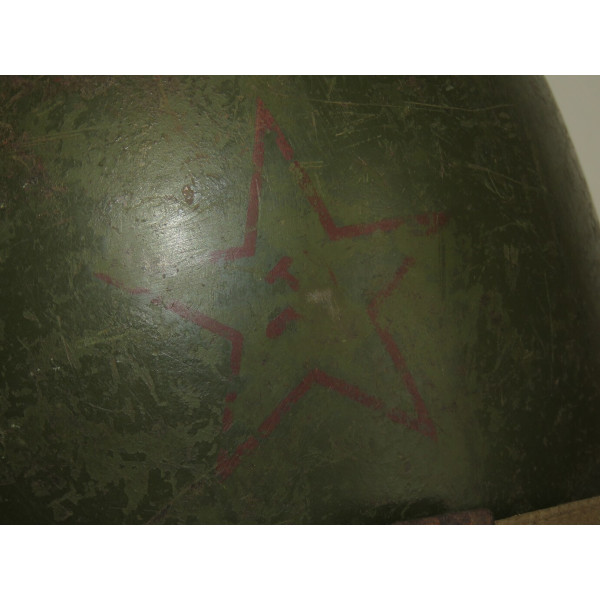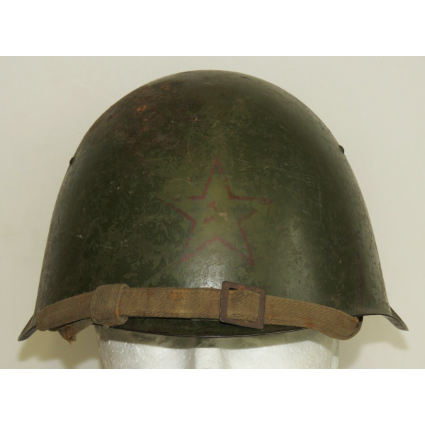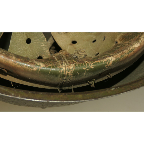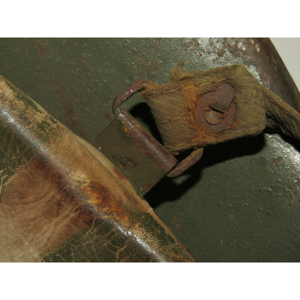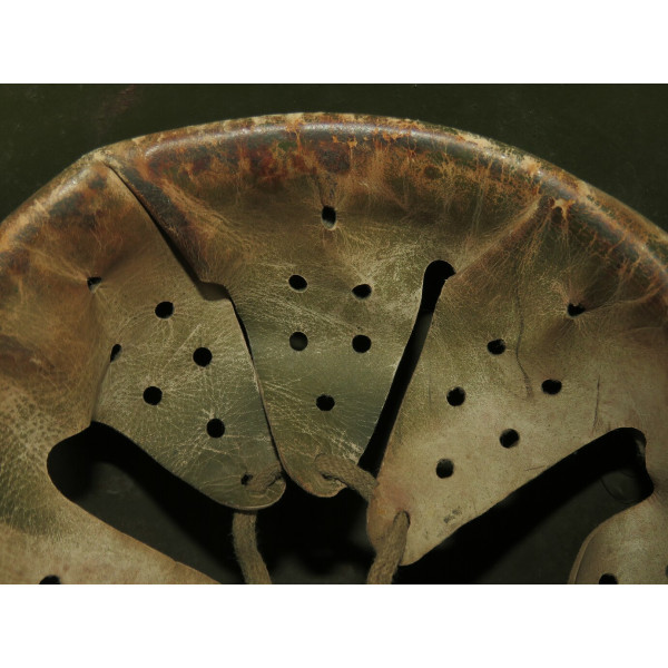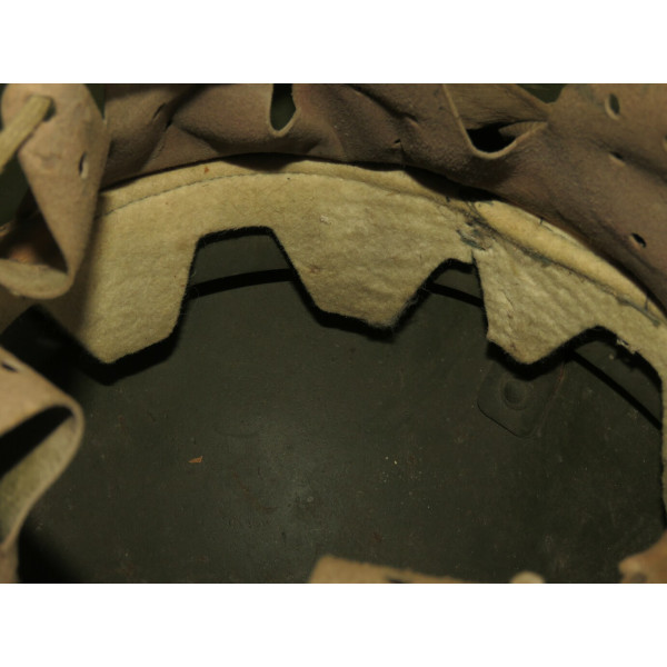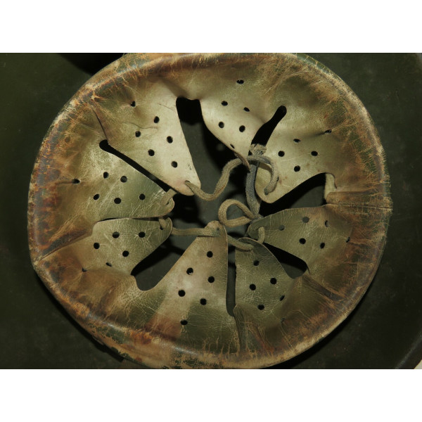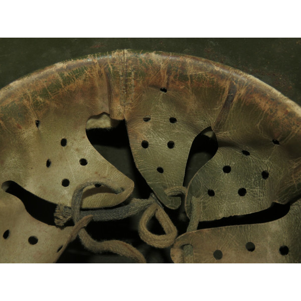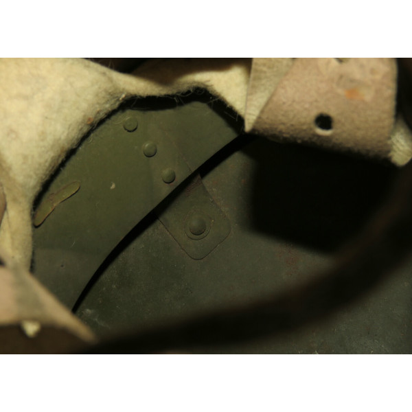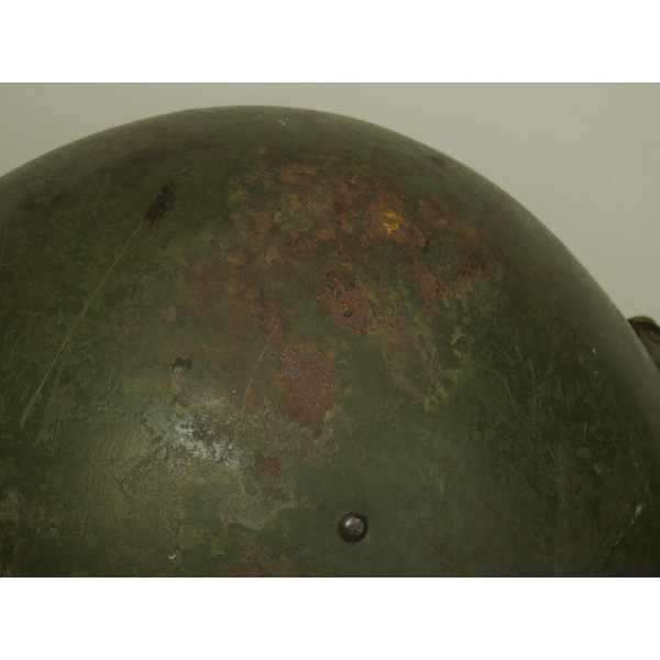 Клейма на внутренней части купола не просматриваются из-за слоя краски. В целом, шлем в отличном и выразительном состоянии, представляет собой интереснейший экспонат с подлинной историей. Один из менее часто встречающихся вариантов СШ-40, особенно в подобной сохранности. Идеальное дополнение к коллекции советского снаряжения времён Великой Отечественной войны.