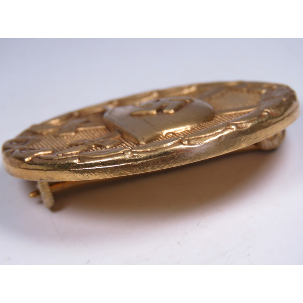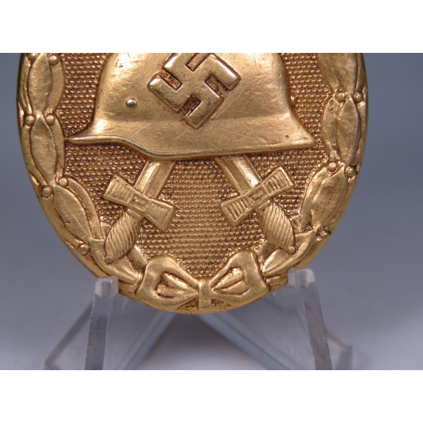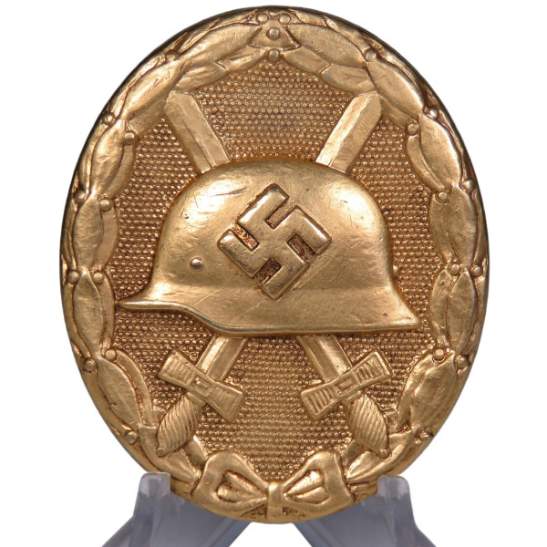 Золотой знак за ранение образца 1939 года, производство Венского монетного двора (Hauptmünzamt Wien), код производителя PKZ 30. Знак выполнен из бунтметалла и не имеет маркировки. Имеются типичные признаки изготовления именно этим предприятием, что позволяет уверенно отнести знак к производству Hauptmünzamt Wien.