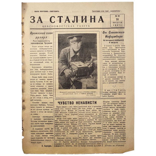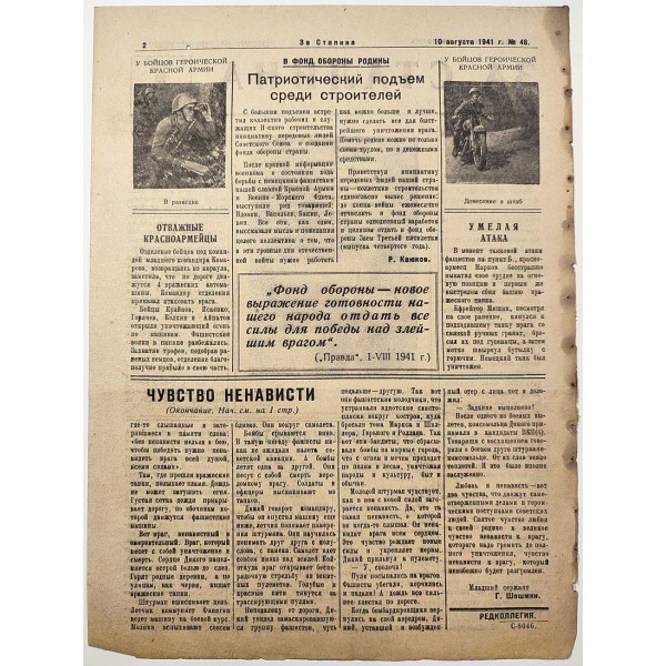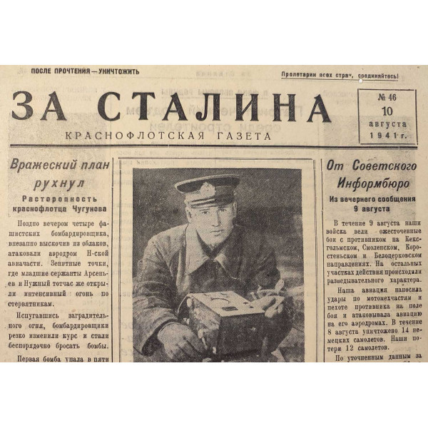 Газета «За Сталина», № 46 от 10 августа 1941 года