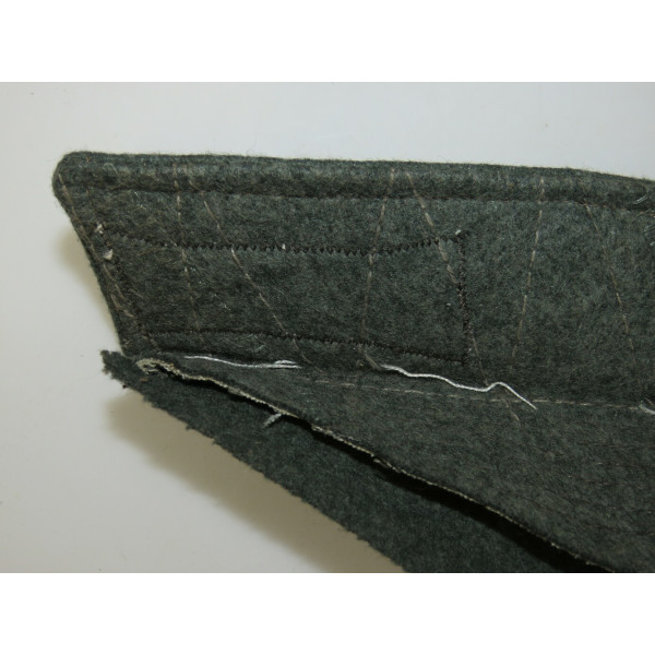 Оригинальный воротник для кителя вермахта образца 1940 года, изготовленный на фабрике и подготовленный к установке. Деталь ни разу не пришивалась, сохранилась в виде заготовки. Воротник сметан оригинальной ниткой и укомплектован ранними петлицами, пришитыми фабричным способом. Вероятно, единственный в своём роде экземпляр — найти аналогичный предмет практически невозможно. Представляет высокий интерес для коллекционеров и исследователей униформы. Состояние — минт.