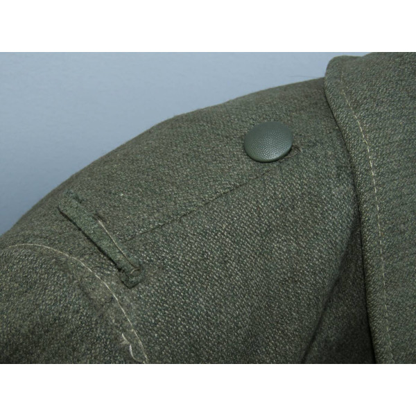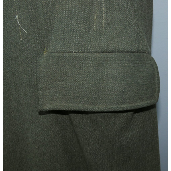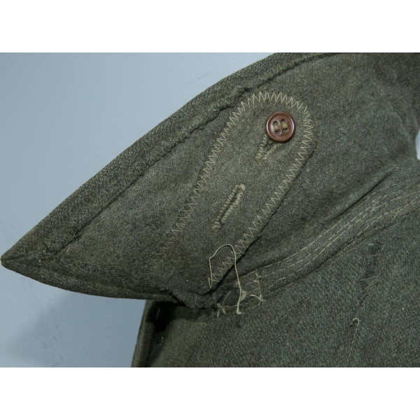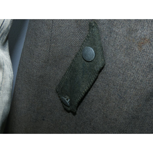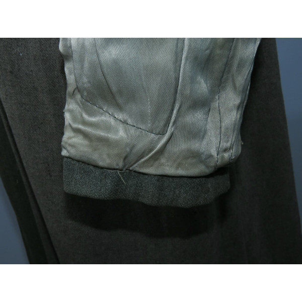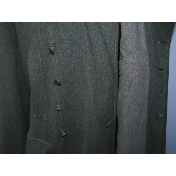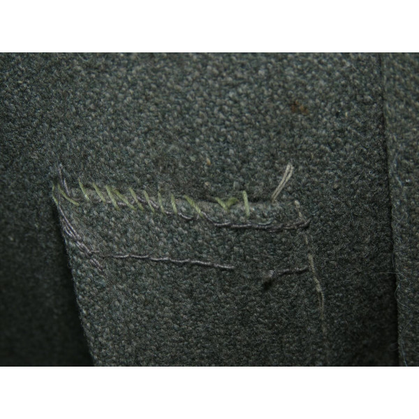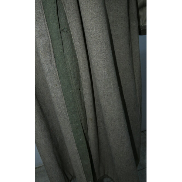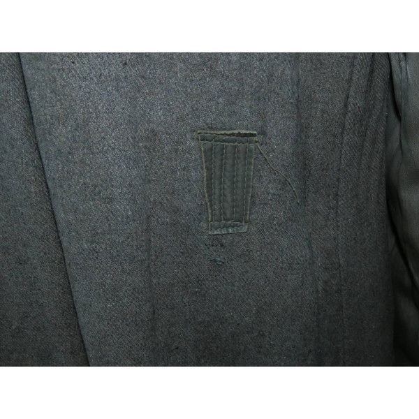 Имеется порыв около 10–15 см, который легко устранить без влияния на внешний вид. Отсутствуют два внутренних кармана — правый нагрудный и левый нижний — что связано с износом, но эти утраты никак не отражаются на общем виде и на манекене остаются незаметными. На левой стороне отсутствуют пуговицы, при необходимости можно дополнить комплект оригинальными. В целом шинель сохранилась в превосходном состоянии, с подлинным антуражем последних месяцев войны.