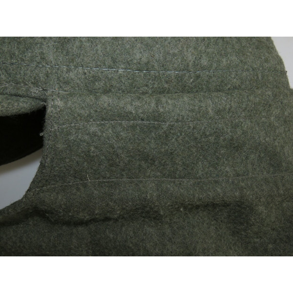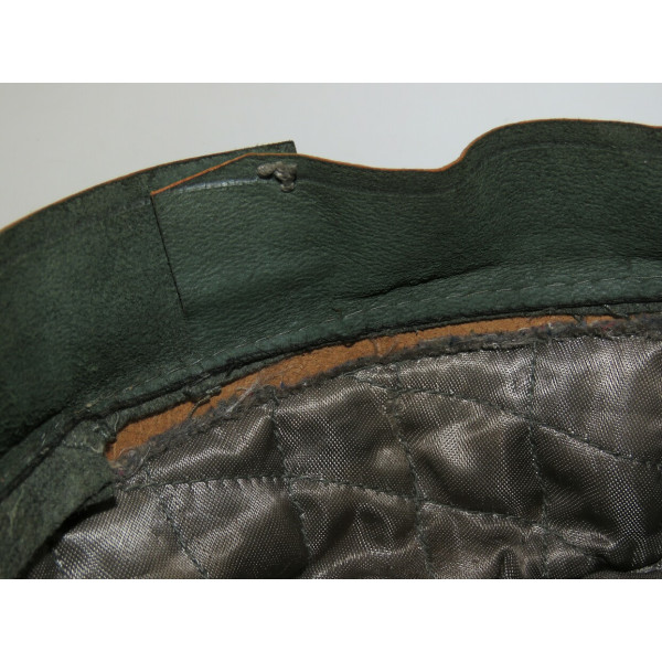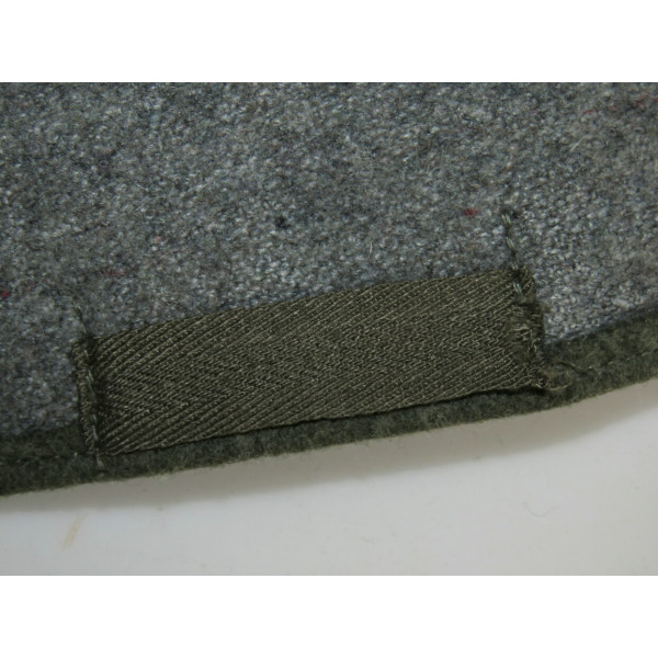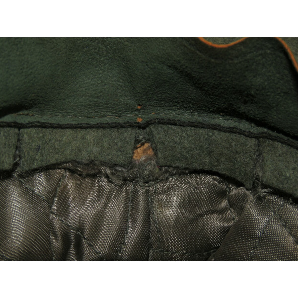 Офицерская зимняя кепка вермахта образца 1943 года, с внутренним утеплением. Кепка находится в идеальном состоянии. Особо редкий вариант, в нашей практике — первый встреченный экземпляр данного типа. Эмблема вышита металлической алюминиевой нитью серого цвета по полю цвета хаки, соответствуя стандарту полевого ношения офицеров. Материалы и исполнение полностью соответствуют позднему военному выпуску, без следов ношения или утрат.