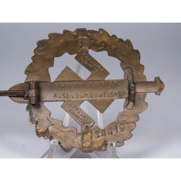 Bronze grade SA-Sportabzeichen with oak-leaf wreath and vertical sword, numbered 34419 on the reverse
