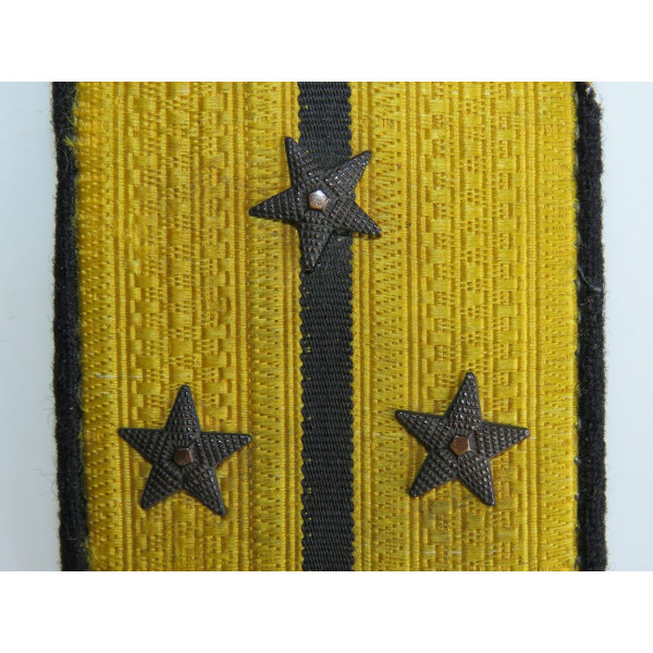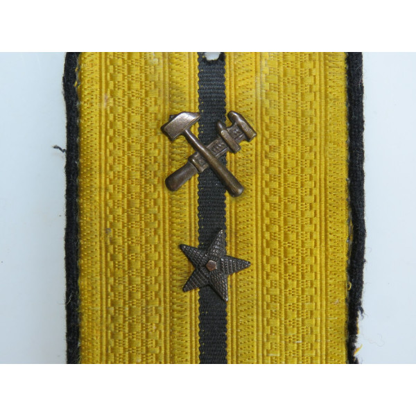 Shoulder board of an Engineer Captain-Lieutenant of the Naval Engineering Service of the Red Navy, made of black cloth with a yellow silk field.