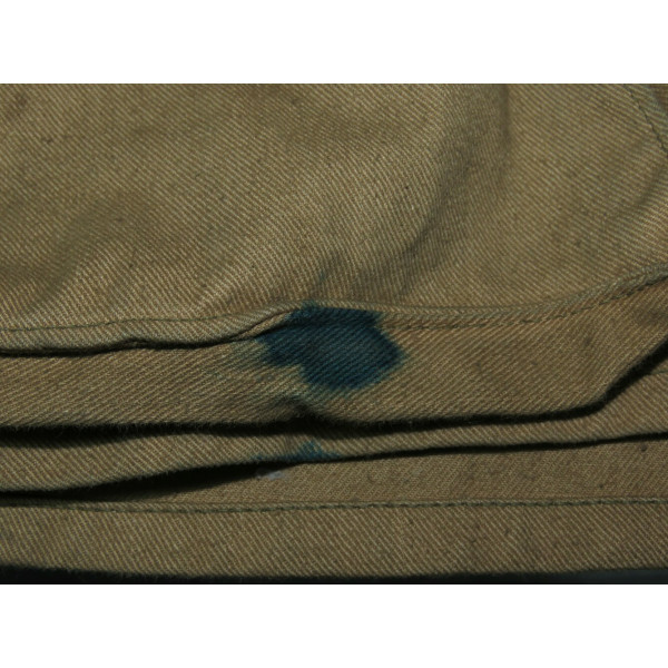 Small dirt marks are visible on the front, and a chemical pencil trace appears on the lower part of the right pocket, a common effect caused by moisture.