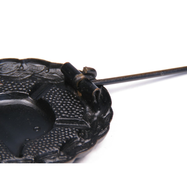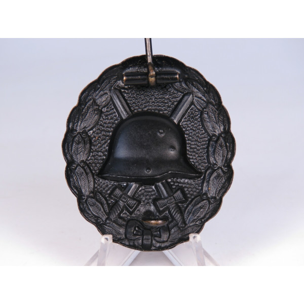 Verwundetenabzeichen 1918 in black grade, made of brass with black finish. Excellent condition with period-toned surface. Classic, high-quality execution with an impressive appearance.