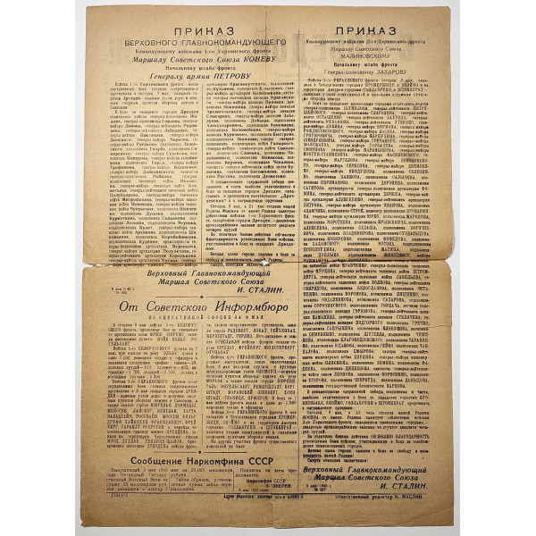 On behalf of the Supreme Commander of the Red Army — Marshal of the Soviet Union Zhukov