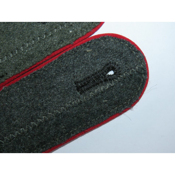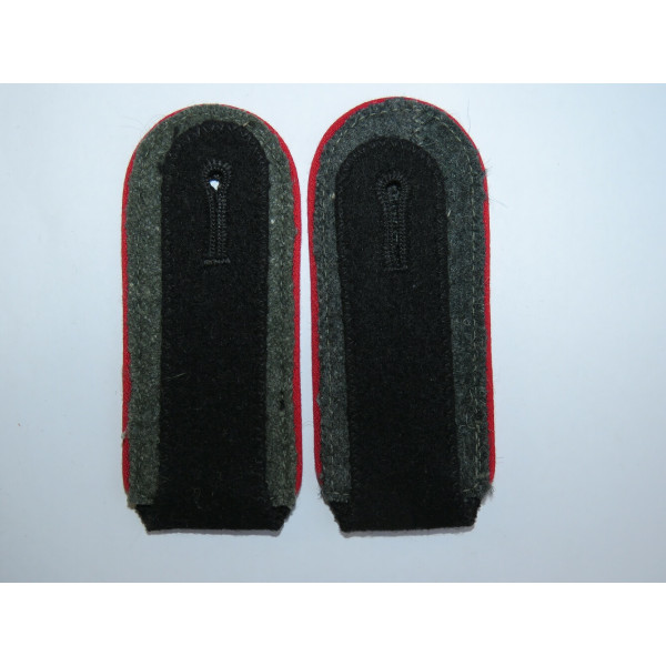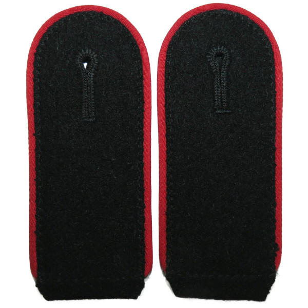 Pair of black wool shoulder boards with red piping for Waffen-SS artillery, from a large discovery of factory insignia found in Germany some years ago