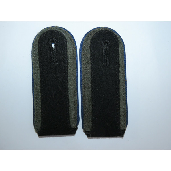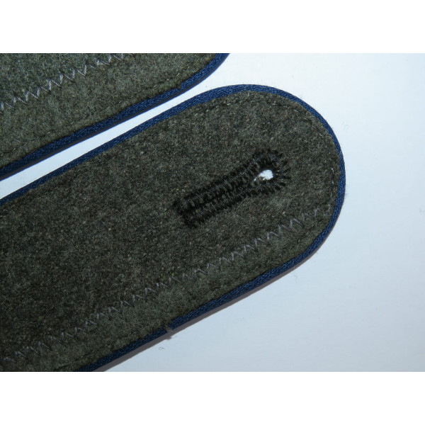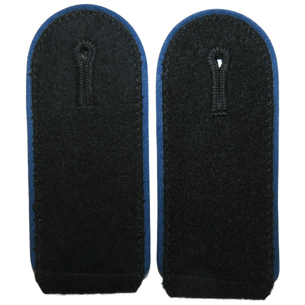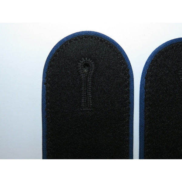 Pair of 1942 pattern shoulder boards for the Sanitätsdienst der Waffen-SS, made of black wool with blue piping, from a large discovery of factory insignia in Germany