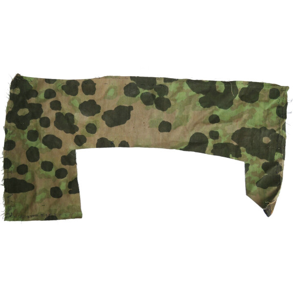 Fragment of Waffen-SS camouflage fabric made using the overprint method. The base pattern is Oak Leaf (Eichenlaubmuster), overlaid with the Plane Tree (Platanenmuster) design. This overprint technique was used to create a multi-layered camouflage effect and is found on Waffen-SS uniforms and camouflage shelter quarters.