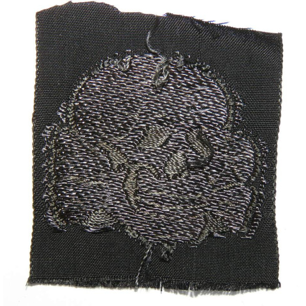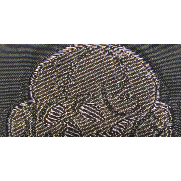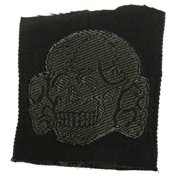 Cap skull for Waffen-SS headgear, produced using BeVo jacquard weaving. The piece shows no evidence of having been sewn onto a cap. The skull features an unusual coloration. Based on the surface condition and paint characteristics, it was most likely repainted at a later stage.