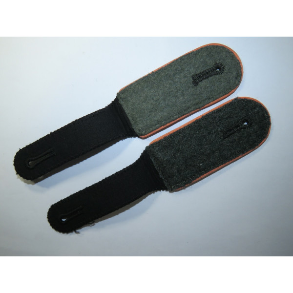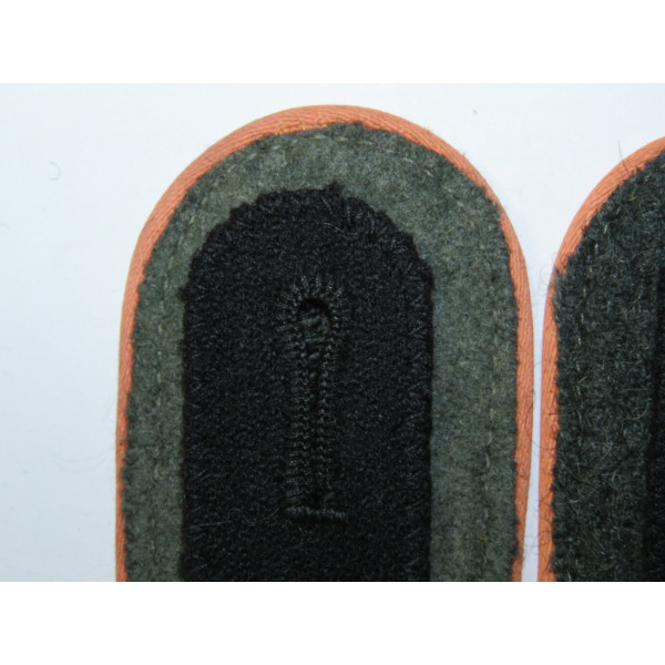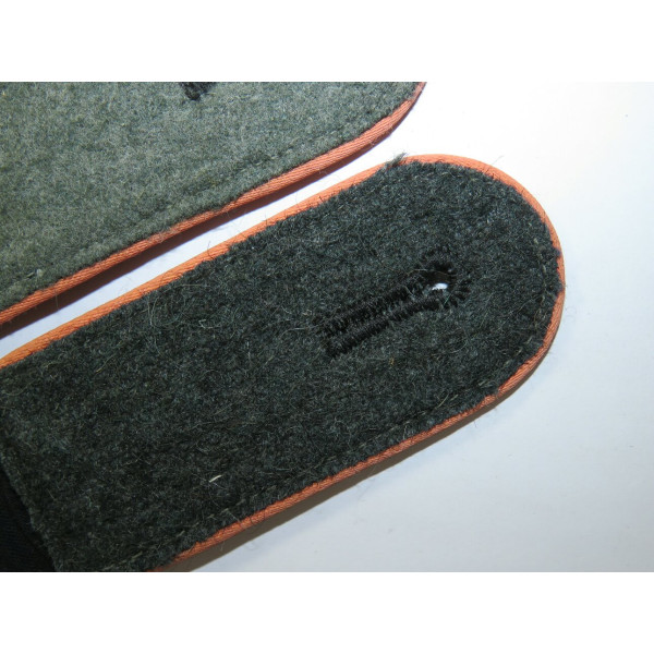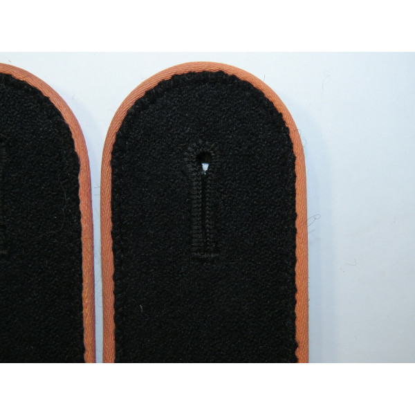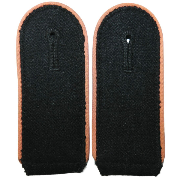 Extremely rare shoulder straps for the Waffen-SS geological service (Wehrgeologen), 1942 pattern, with Hellachsrosa (light salmon-pink) piping. Made from the distinctive German insignia cloth with the characteristic W-textured weave. In excellent condition, originating from the batch discovered in the Erzgebirge region.