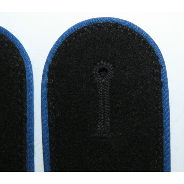 Pair of Waffen-SS shoulder boards for medical personnel (Sanitätsdienst) with blue piping, 1942 pattern. A textbook example of wartime issue. From a lot found in Germany several years ago. Mint condition with no signs of use.