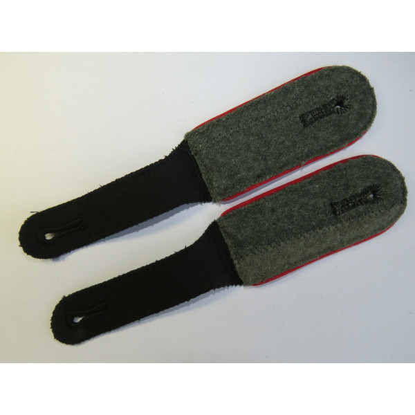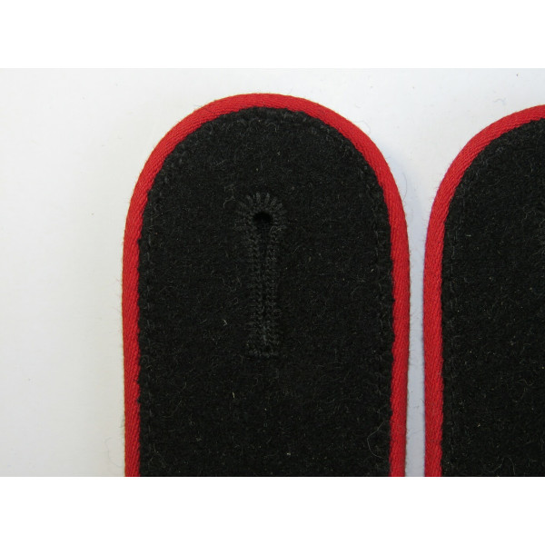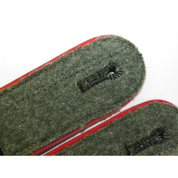 Pair of shoulder boards model 1942 for Waffen-SS artillery units, featuring red branch piping. Unissued condition. Hoard find from a past discovery in Germany.