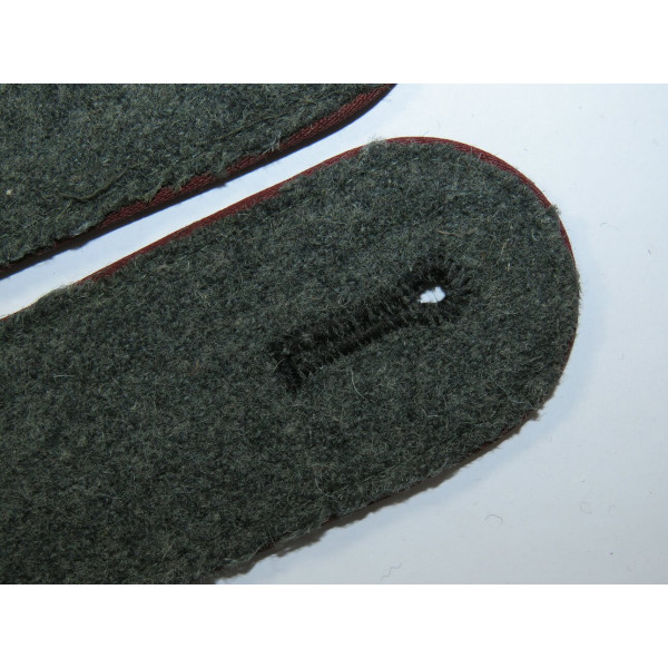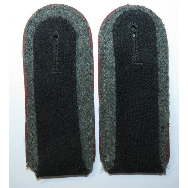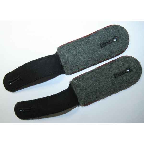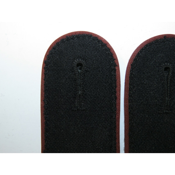 Extremely rare shoulder boards for Waffen-SS concentration camp guard units (Wachmannschaften), featuring chocolate-brown piping specific to this service branch. Made from the distinctive German insignia cloth with the characteristic W-textured weave. In excellent condition. Such unique examples are exceptionally scarce, and only a few pieces were present in the discovered batch, making this set highly desirable for collectors.