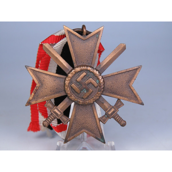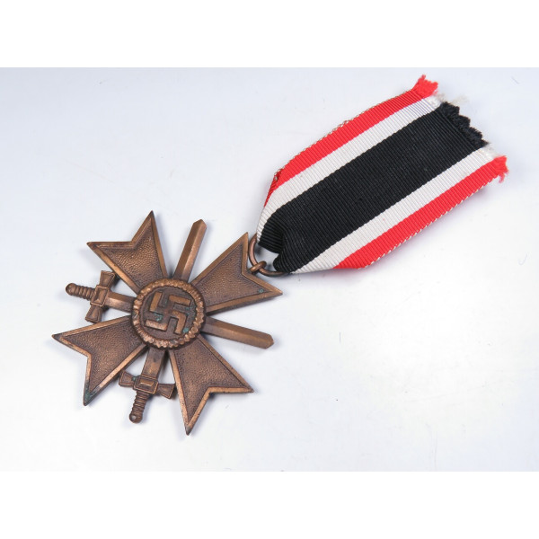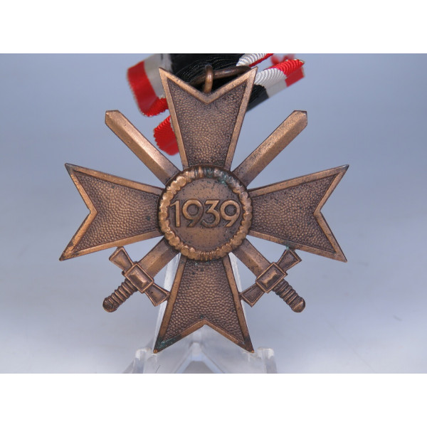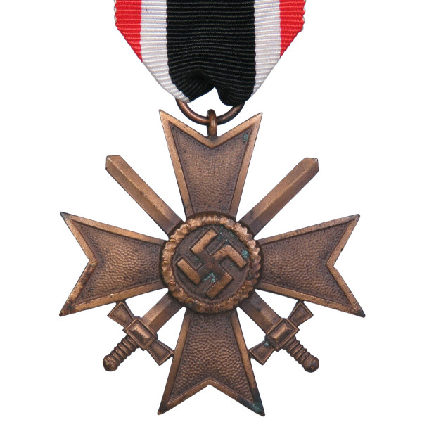 The cross is made of bronze, showing traces of storage and light oxidation. The original ribbon displays minor signs of oxidation, no maker’s mark present.