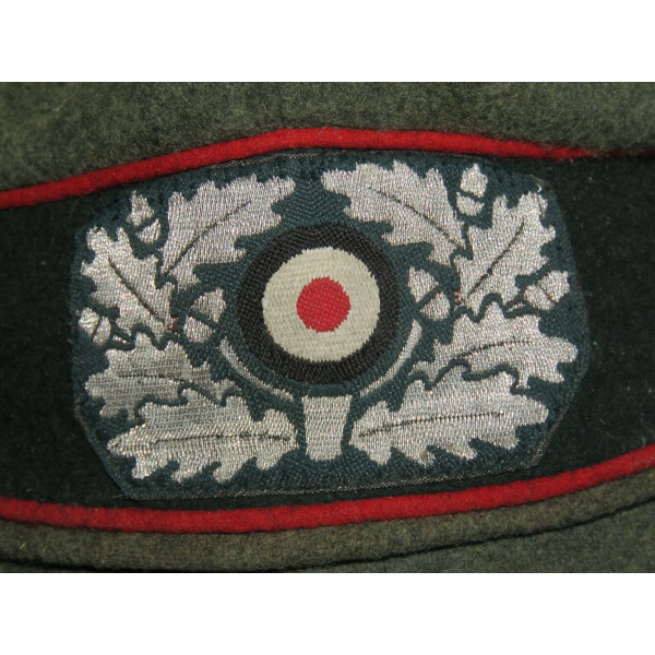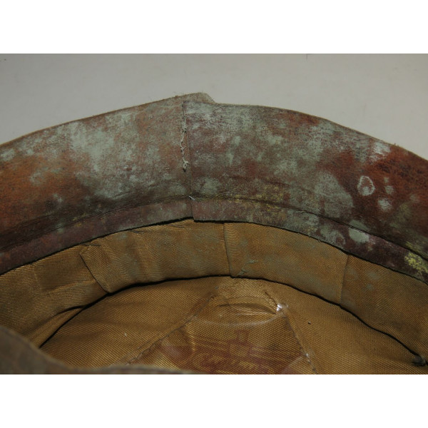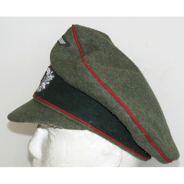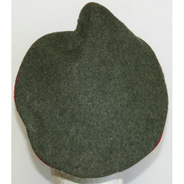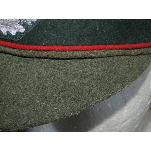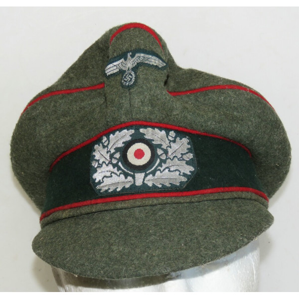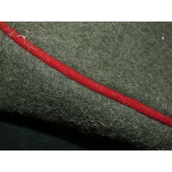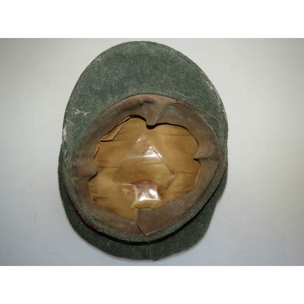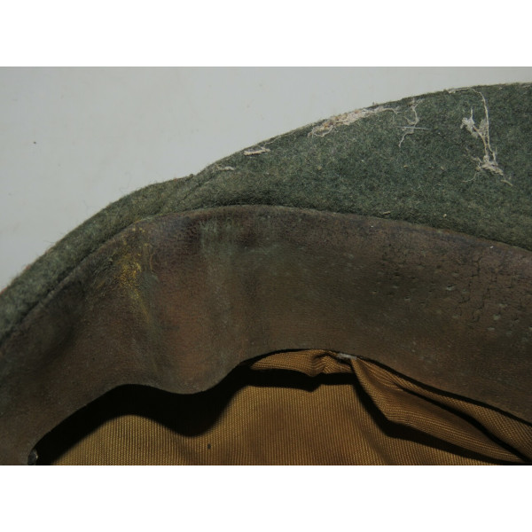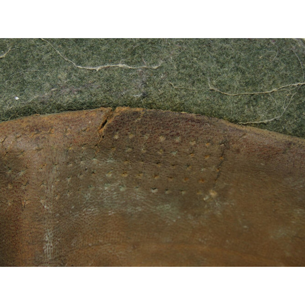 Wehrmacht artillery field visor cap in a rare all-wool construction including a wool visor. Such examples are extremely scarce and far less common than standard crusher caps, with virtually no recent market appearances. The cap is in attic-found condition, showing minor moth damage on the inner side of the visor along with dust and cobweb traces. The item has not been cleaned and is offered as found. The new owner may choose to preserve its current state or clean it at their discretion. Size is difficult to determine.