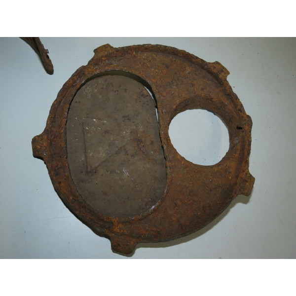 Fragment of a stove from a German bunker, discovered in the Narva area. Made of heavy iron, showing traces of corrosion and age. An authentic relic from the battles of Narva, Estonia.