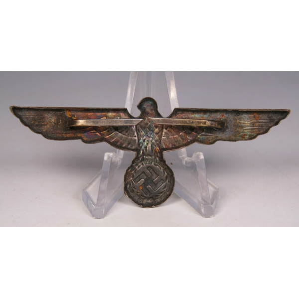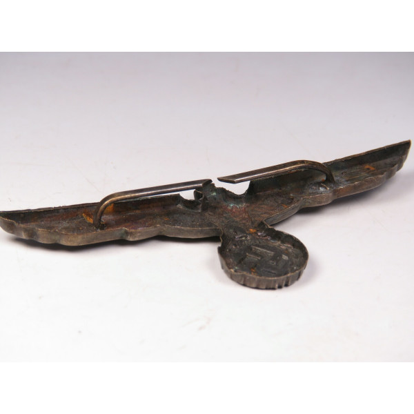 Early type Wehrmacht cap eagle Hoheitsabzeichen Heer, produced in nickel silver, approximately dated to around 1937. Crisp early pattern with sharp detailing.