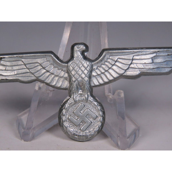Iron cap eagle of the Wehrmacht from the mid to late war period. Typical wartime stamped construction. Mint condition, unworn.