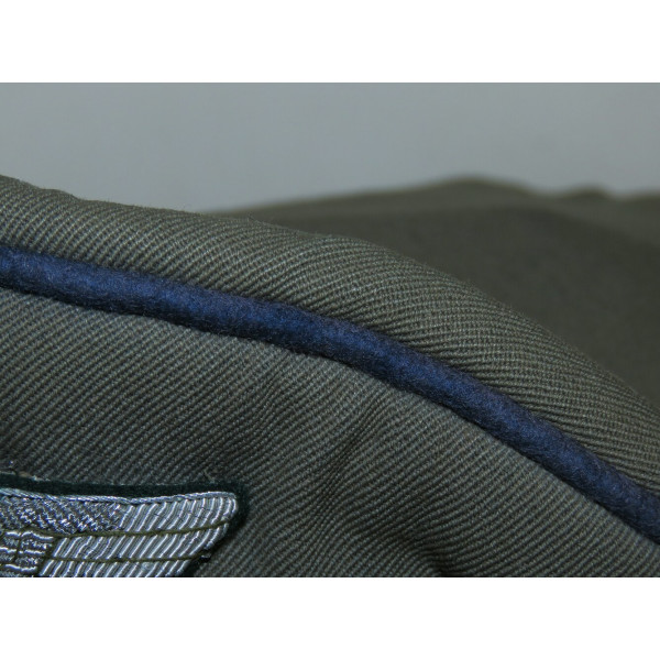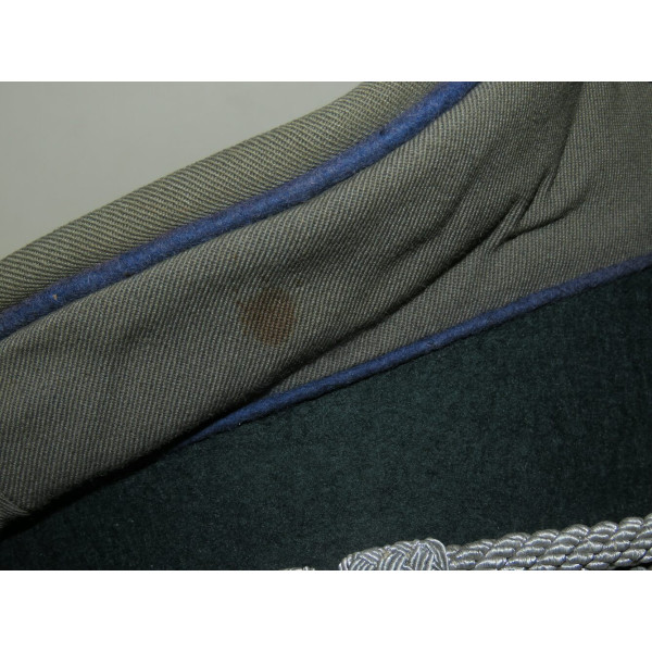 Insignia are made of aluminium bullion wire, as expected for officer-grade caps