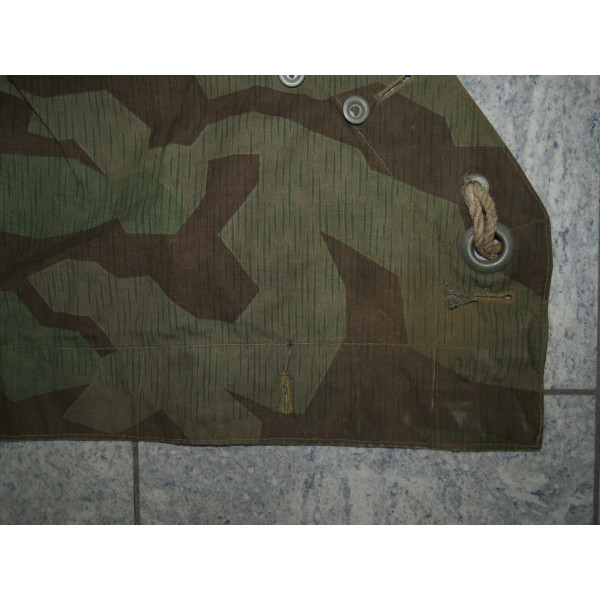Wehrmacht shelter quarter in splinter camouflage, in mint condition with virtually no signs of use. Only minor dust traces from storage. Features two markings: one likely a batch number, the other an RB number.
