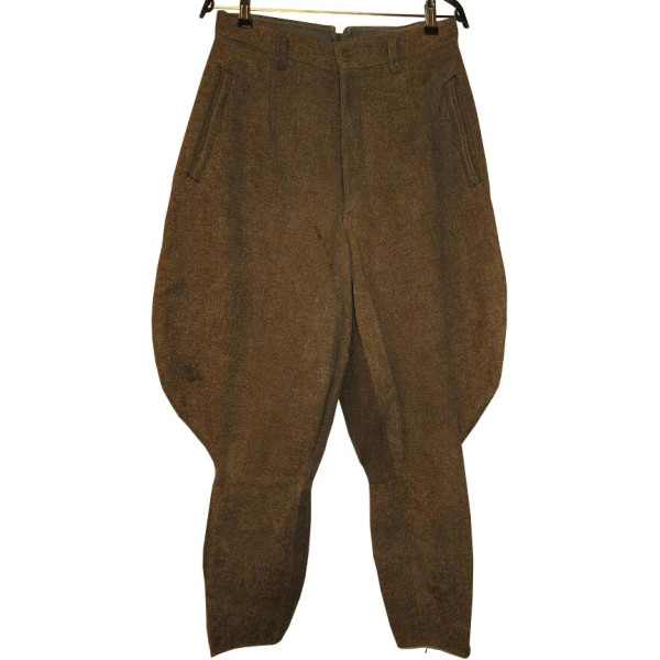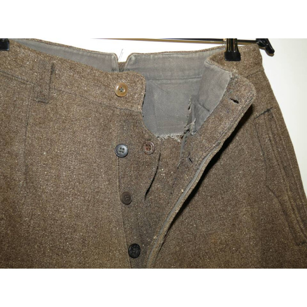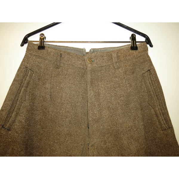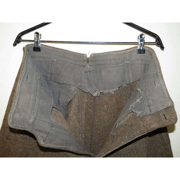 WW2 period partisan trousers, made by partisan tailor by the cut of Red Army breeches. The trousers has been kept in local school museum before the USSR fall. Later the museum was disbanded and most of the items were sold out to private collections. The trousers made from rough overcoat’s wool. Very interesting piece of history